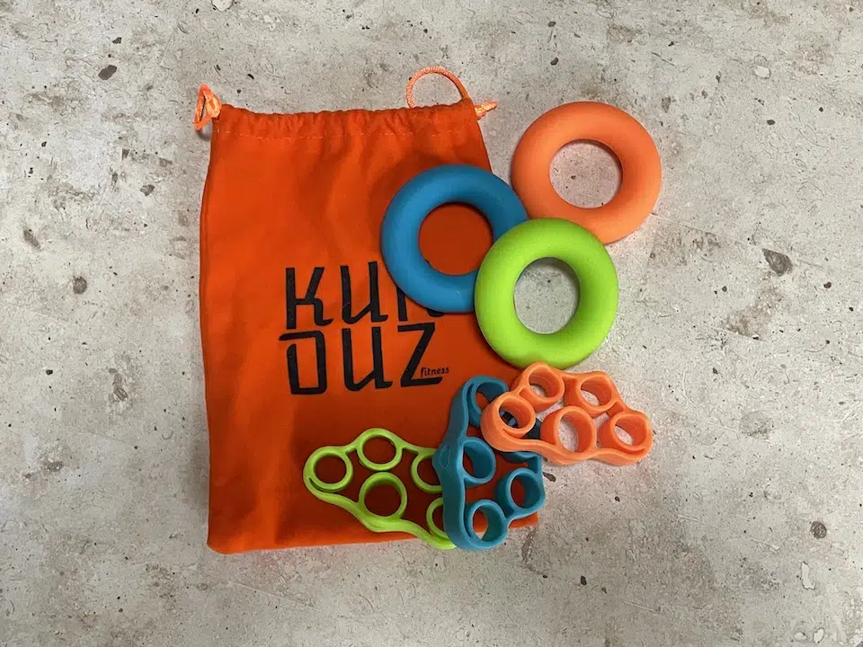 This kit contains a light, medium and heavy tool. Finger exercises with these tools help increase the strength in your hands, fingers, wrists and forearms. The ergonomic design is self-explanatory and super easy to use.