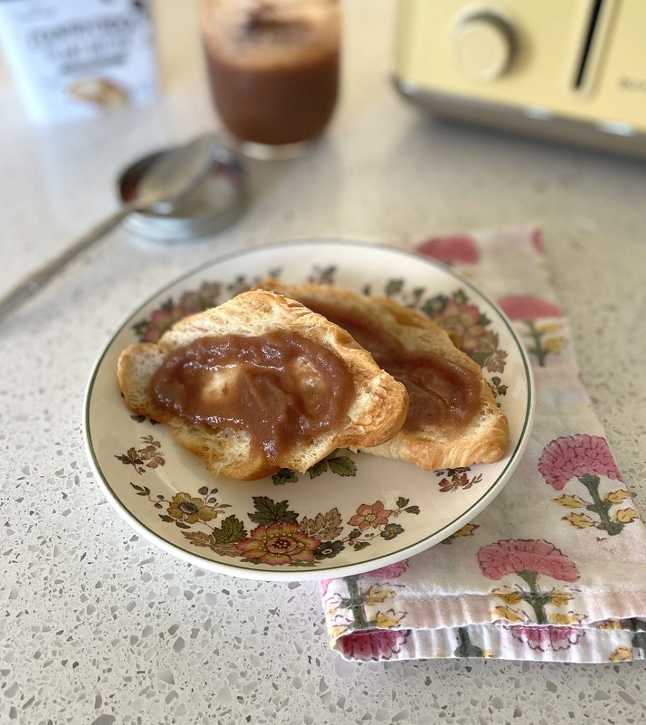 I left the jars undisturbed for a day before removing the rings, wiping the lids and placing nine jars in the pantry. The other jar I popped open and promptly sampled its contents. They were smooth, tasteful with a nice little tang from the ACV. This apple butter is so good, in fact, I have already made another batch to give away to friends!