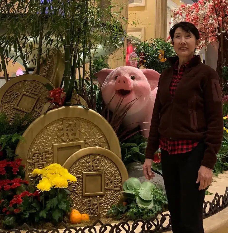 Just as many daughters do, I follow my mother’s tradition. Since red is such an important color for Chinese New Year, I plant red cyclamens in our yard’s planters. The kids all received new clothes and shoes. They had to look spiffy. I also made sure all the good luck food was prepared the night before. Fish is a very important dish; we freeze a portion of it for the next year as a symbol of surplus and plenty. We also eat Fat Choy (black moss), a hair-like fungus whose name itself means luck and prosperity. Potstickers are also an important dish because they resemble the shape of Chinese money (Yuanbao) from thousands of years ago. And Tangyuan, which symbolizes family togetherness, is a round rice ball filled with a sweet filling. My mom used to wake me up in the morning and say, “Tuántuán yuányuán,” which means group-group round-round or happy, harmonious reunion. And of course, my favorite … sweets. We want a sweet year filled with good fortune, good health and happiness. All that is repeated throughout the first week of the new year.